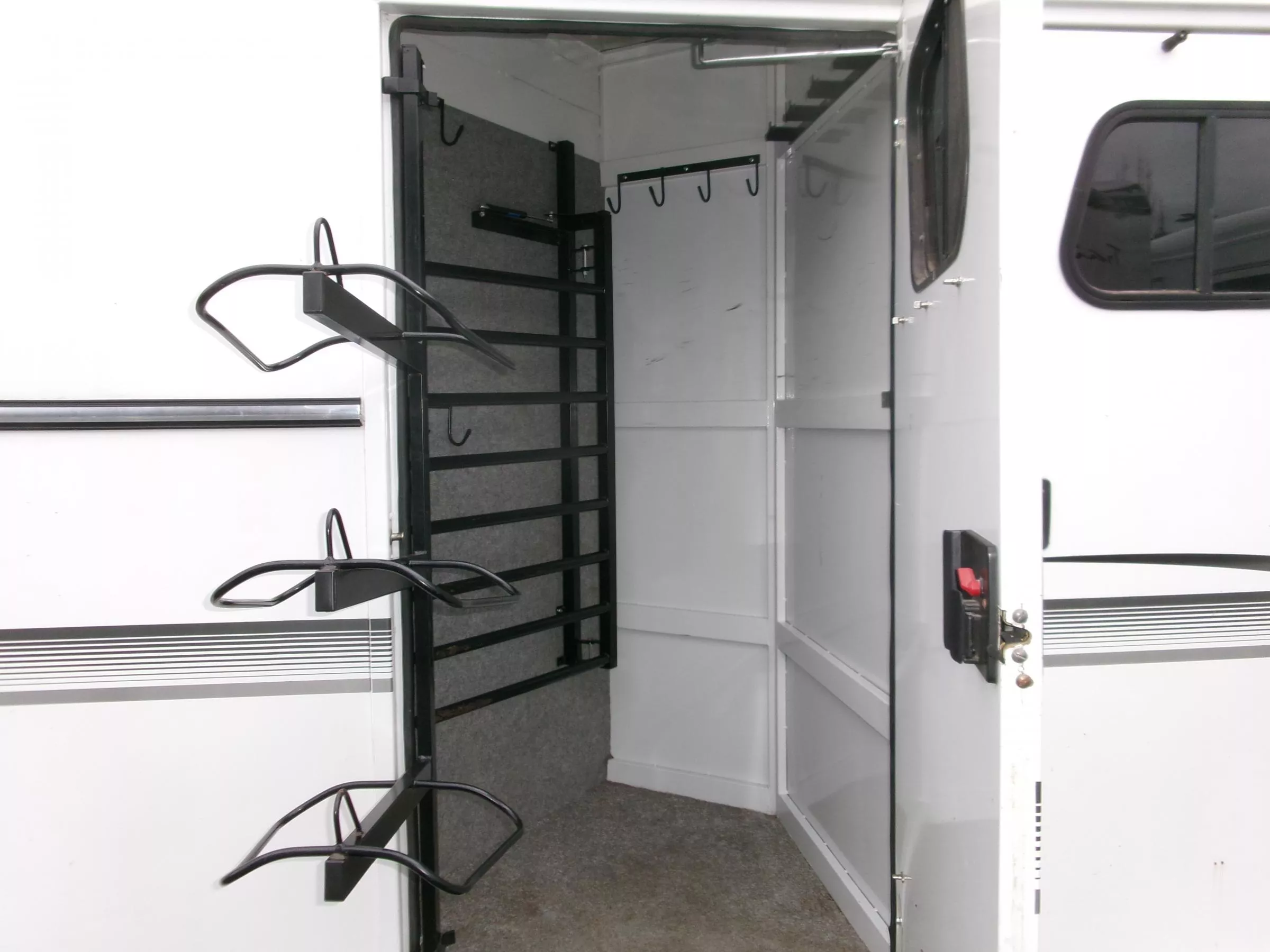 This is a trade in. Yes it has a lot of miles on it but it has a lot of miles left in her. Three horse slant gooseneck with a super nice front camping area and a side tack separate. Front is lined and insulated. Wardrobe, storage, sink with water, 110 v plug in, battery power. Rear area has stud divider and side unload access door. We has gone through trailer and it got new bearings, brakes etc inspected, tires are good, everything works. Gorgeous? no. Safe and useful? Yes.