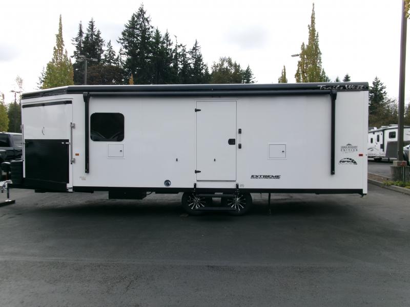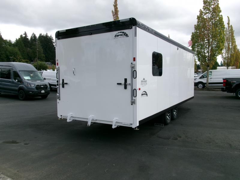 Brand new, just arrived, 2025 Trails West RPM snowmobile trailer. This one is loaded....Chris Burandt package plus Extreme cold package. 35 gal fuel cell, full length power awning, 2nd window, pre-wired for A/C, tie down rails, POWER rear ramp, elec jack. The Burandt package comes with furnace, 110v system, battery power, cabinets, benches, spare tire, stereo, onesy rack, shelves, traction blocks, ceiling fan/vent ....and more!